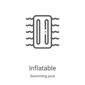 Nadmuchiwany wektor ikony basenu z kolekcji basenów. Cienka linia nadmuchiwany zarys puli ilustracja wektora ikony. Symbol liniowy do stosowania w aplikacjach internetowych i mobilnych, logo, mediach drukowanych