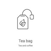 wektor torebki herbaty z kolekcji herbaty i kawy. Cienka linia torebka herbaty zarys ikony wektor ilustracji. Symbol liniowy do stosowania w aplikacjach internetowych i mobilnych, logo, mediach drukowanych