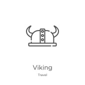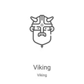 wektor ikony wikingów z kolekcji Wikingów. Cienka linia wikingów zarys ilustracji wektora ikony. Symbol liniowy do stosowania w aplikacjach internetowych i mobilnych, logo, mediach drukowanych