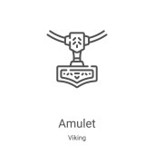 wektor ikony amuletu z kolekcji historii. Cienki obrys amuletu ilustruje wektor ikony. Symbol liniowy do stosowania w aplikacjach internetowych i mobilnych, logo, mediach drukowanych