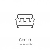 wektor kanapy z kolekcji dekoracji wnętrz. Cienka linia kanapy zarys ikony wektor ilustracji. Symbol liniowy do stosowania w aplikacjach internetowych i mobilnych, logo, mediach drukowanych