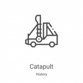 wektor katapulty z kolekcji wikingów. Cienki kontur katapulty zarys ilustracji wektora ikony. Symbol liniowy do stosowania w aplikacjach internetowych i mobilnych, logo, mediach drukowanych