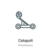 Zdjęcie "wektor katapulty z kolekcji wikingów. Cienki kontur katapulty zarys ilustracji wektora ikony. Symbol liniowy do stosowania w aplikacjach internetowych i mobilnych, logo, mediach drukowanych" może być wykorzystywane do celów osobistych i komercyjnych zgodnie z warunkami zakupionej licencji Royalty-free. Obraz jest dostępny do pobrania w jakości wysokiej rozdzielczości do 5760x3840.