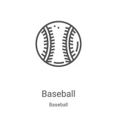 Wektor ikony baseballu z kolekcji sprzętu sportowego. Cienki zarys baseballu ilustracja wektora ikony. Symbol liniowy do stosowania w aplikacjach internetowych i mobilnych, logo, mediach drukowanych