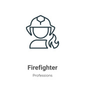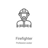 Zdjęcie "wektor ikony strażaka z kolekcji awatarów zawodowych. Cienki zarys strażaka zarys ilustracji wektora ikony. Symbol liniowy do stosowania w aplikacjach internetowych i mobilnych, logo, mediach drukowanych" może być wykorzystywane do celów osobistych i komercyjnych zgodnie z warunkami zakupionej licencji Royalty-free. Obraz jest dostępny do pobrania w jakości wysokiej rozdzielczości do 5760x3840.