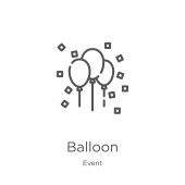 Zdjęcie "balony wektor ikony z kolekcji party. Cienkie balony zarys ilustracji wektora ikony. Symbol liniowy do stosowania w aplikacjach internetowych i mobilnych, logo, mediach drukowanych" może być wykorzystywane do celów osobistych i komercyjnych zgodnie z warunkami zakupionej licencji Royalty-free. Obraz jest dostępny do pobrania w jakości wysokiej rozdzielczości do 5760x3840.