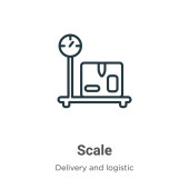 Zdjęcie "wektor skali ikony od odbioru ładunku dostawy. Cienki kontur skali zarys ilustracji wektora ikony. Symbol liniowy do stosowania w aplikacjach internetowych i mobilnych, logo, mediach drukowanych" może być wykorzystywane do celów osobistych i komercyjnych zgodnie z warunkami zakupionej licencji Royalty-free. Obraz jest dostępny do pobrania w jakości wysokiej rozdzielczości do 5760x3840.