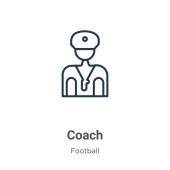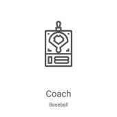 wektor ikony trenera z kolekcji hokeja. Cienka linia trenera zarys ilustracji wektora ikony. Symbol liniowy do stosowania w aplikacjach internetowych i mobilnych, logo, mediach drukowanych