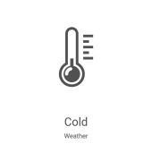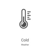 zimny wektor ikony z kolekcji pogody. Cienka linia zimny zarys ikony wektor ilustracji. Symbol liniowy do stosowania w aplikacjach internetowych i mobilnych, logo, mediach drukowanych