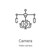 wektor mikrofonu z kolekcji kamer wideo. Cienki zarys mikrofonu ilustracja wektora ikony. Symbol liniowy do stosowania w aplikacjach internetowych i mobilnych, logo, mediach drukowanych
