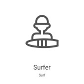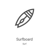wektor ikony plaży z kolekcji surfingowej. Cienki zarys plaży zarys ikony wektor ilustracji. Symbol liniowy do stosowania w aplikacjach internetowych i mobilnych, logo, mediach drukowanych
