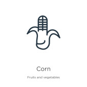 wektor ikony kukurydzy z kolekcji letniej żywności i napojów. Cienki kontur kukurydzy zilustrować wektor ikony. Symbol liniowy do stosowania w aplikacjach internetowych i mobilnych, logo, mediach drukowanych