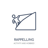Zdjęcie "Wprowadzam wektor ikony. Modna płaska ikona rappelingu z kolekcji aktywności i hobby odizolowana na białym tle. Ilustracja wektorowa może być używana do projektowania graficznego, logo, eps10" może być wykorzystywane do celów osobistych i komercyjnych zgodnie z warunkami zakupionej licencji Royalty-free. Obraz jest dostępny do pobrania w jakości wysokiej rozdzielczości do 5760x3840.