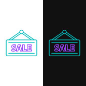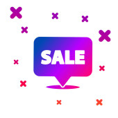 Kolor wiszący znak z tekstem Ikona sprzedaży izolowane na białym tle. Podpis z tekstem Sprzedaż. Gradientowe losowe kształty dynamiczne. Ilustracja wektora