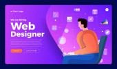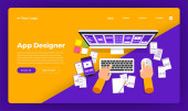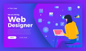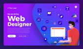 Koncepcja płaskiej konstrukcji zatrudniamy projektanta stron internetowych. Projekt szablonu strony lądowania do zatrudniania projektantów stron internetowych. Ilustracje wektorów.