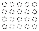 Strzałki czarno-białe wektorowe ikony zestaw. Wskaźniki w okręgu i prostokąta pojedyncze symbole pakietu. Następny, do przodu, poprzednie przyciski monochromatyczne pakiety znaków. Zbieranie piktogramów kursorów