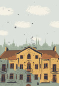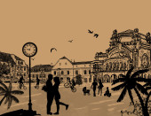 wektor wzór tła z piękną panoramę miasta i ludzi sylwetka