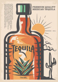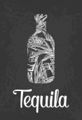 Logo baru tequila z butelką tequili rosnącej z rośliny agawy. Kreatywny klasyczny symbol napojów alkoholowych. Ikona wektorowa ilustracja meksykańskiego napoju.