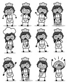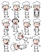 Rysunek sztuki kucharza kreskówek pozuje - zestaw pojęć wektor illus