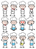 Rysowanie sztuki komiksu kucharz pozuje - zestaw pojęć wektor illustr