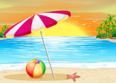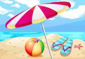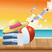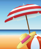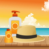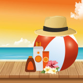 lato w wakacje na plaży parasol kapelusz ręczniki i krem do opalania