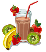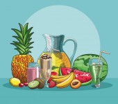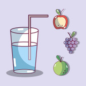sok szklany i kosz ze świeżych owoców żywności zdrowe