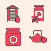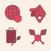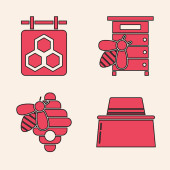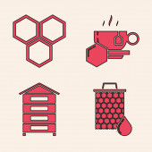Zestaw plastrów miodu, pałeczki miodu, plaster miodu i ul dla ikony pszczół. Wektor
