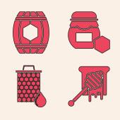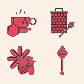 Zestaw filiżanka herbaty z miodem, plaster miodu z stickicon dipper, mapa plastra miodu świata i plastra miodu mapy świata i ikona pszczoły. Wektor
