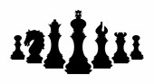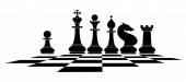 Szachy wektorowe odizolowane na białym tle. Gram w szachy w zarządzie. Król, królowa, wieża, rycerz, goniec, pionek. Sylwetki figur szachowych. Ikony szachowe