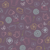 Zdjęcie "Druk herbaty: czajniczek, filiżanka herbaty, ciastka: ciasteczka, ciasto. Czekoladowe cukierki. Jagody róży i liście herbaty. Gotowe. Płynny wzór wektora (tło). Ozdoba kreskówkowa." może być wykorzystywane do celów osobistych i komercyjnych zgodnie z warunkami zakupionej licencji Royalty-free. Obraz jest dostępny do pobrania w jakości wysokiej rozdzielczości do 5760x3840.