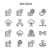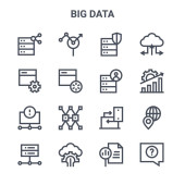 zestaw 16 ikon skoku wektorowego, takich jak wizualizacja, globalny, vel