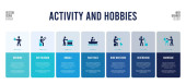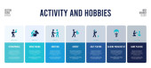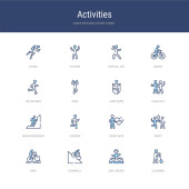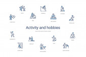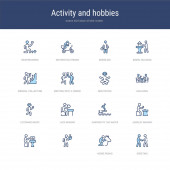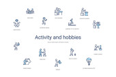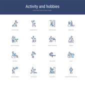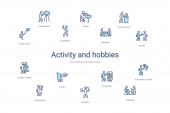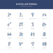 Koncepcja aktywności i hobby 14 kolorowych ikon zarysu. 2 kolory
