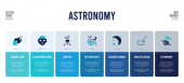 Szablon infograficzny projektu astronomicznego. w tym galaktyka v