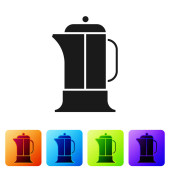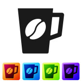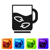 Czarny drewniany kubek ikona izolowane na białym tle. Zestaw ikon w kolorach kwadratowych przycisków. Ilustracja wektora