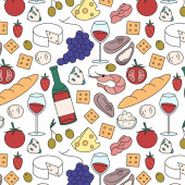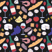 Zdjęcie "Włoskie jedzenie z pizzą gotowania, makaron obiad, spaghetti i ser, desery i wino bezszwowe wzór wektor ilustracja." może być wykorzystywane do celów osobistych i komercyjnych zgodnie z warunkami zakupionej licencji Royalty-free. Obraz jest dostępny do pobrania w jakości wysokiej rozdzielczości do 5760x3840.