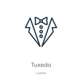 Zdjęcie "Tuxedo zarys ikony wektora. Cienka linia czarny smokingi ikona, płaski wektor prosty element ilustracja z koncepcji ubrania edytowalne izolowane na białym tle" może być wykorzystywane do celów osobistych i komercyjnych zgodnie z warunkami zakupionej licencji Royalty-free. Obraz jest dostępny do pobrania w jakości wysokiej rozdzielczości do 5760x3840.
