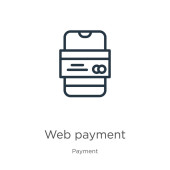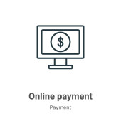 Płatność internetowa zarys ikona wektora. Cienka czarna ikona płatności internetowej, płaski wektor prosty element ilustracja z edycji koncepcji płatności izolowane na białym tle