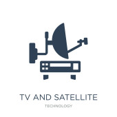 Telewizyjny i satelitarny wektor glifu na białym tle. Telewizor płaski wektor i symbol ikony satelitarnej z kolekcji nowoczesnych technologii do projektowania aplikacji mobilnych i internetowych.