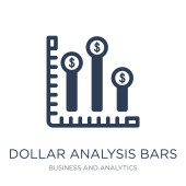 Dolar analiza paski wektor ikona na białym tle. Płaski wektor analizy dolara paski symbol ikony znak z nowoczesnej kolekcji biznesowej i analitycznej do projektowania aplikacji mobilnych i internetowych.