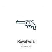 Zdjęcie "Ikona wektora rewolweru. Cienki czarny rewolwer ikona, płaski wektor prosty element ilustracja od edytowalnej koncepcji armii izolowane na białym tle" może być wykorzystywane do celów osobistych i komercyjnych zgodnie z warunkami zakupionej licencji Royalty-free. Obraz jest dostępny do pobrania w jakości wysokiej rozdzielczości do 5760x3840.