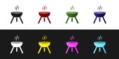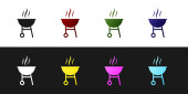 Ustaw ikonę grilla Grill izolowane na czarno-białym tle. Grill party grillem. Ilustracja wektorowa