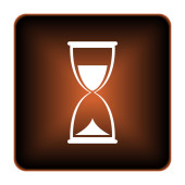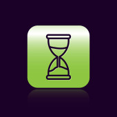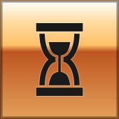 Złoto stare klepsydra z płynącą ikonę piasku na czarnym tle. Znak zegara piasku. Koncepcja zarządzania czasem i biznesem. Ilustracja wektorowa