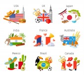 Szablon z francuskiej flagi i innych symboli kraju. Wektor.