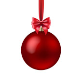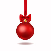 Red christmas cacko z czerwoną wstążką na białym tle