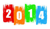 Nowy rok 2014 ręka wektor doodle znak lub numer symbolu projekt z wyróżnienia żółty, niebieski, różowy i zielony. wyróżnianie wiadomości na białym tle.