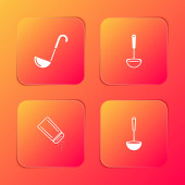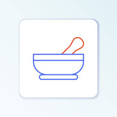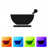 Czarna linia zaprawy i ikona tłuczka izolowane na białym tle. Zestaw ikon w kolorach kwadratowych przycisków. Ilustracja wektora