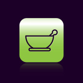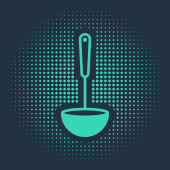 Zielona zaprawa i ikona tłuczka odizolowane na niebieskim tle. Abstrakcyjne kółko przypadkowych kropek. Ilustracja wektora
