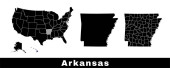Arkansas wektorowe mapy hrabstw, miasteczek, regionów, gmin, departamentów, granic