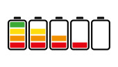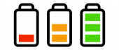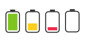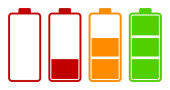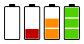 Zestaw czterech ikon baterii o różnym poziomie energii. Ilustracja wektora.