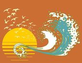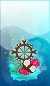 Ręce trzymają piłkę, w której dzień i noc są w równowadze. Bal jest ozdobiony ozdobami narodowymi.